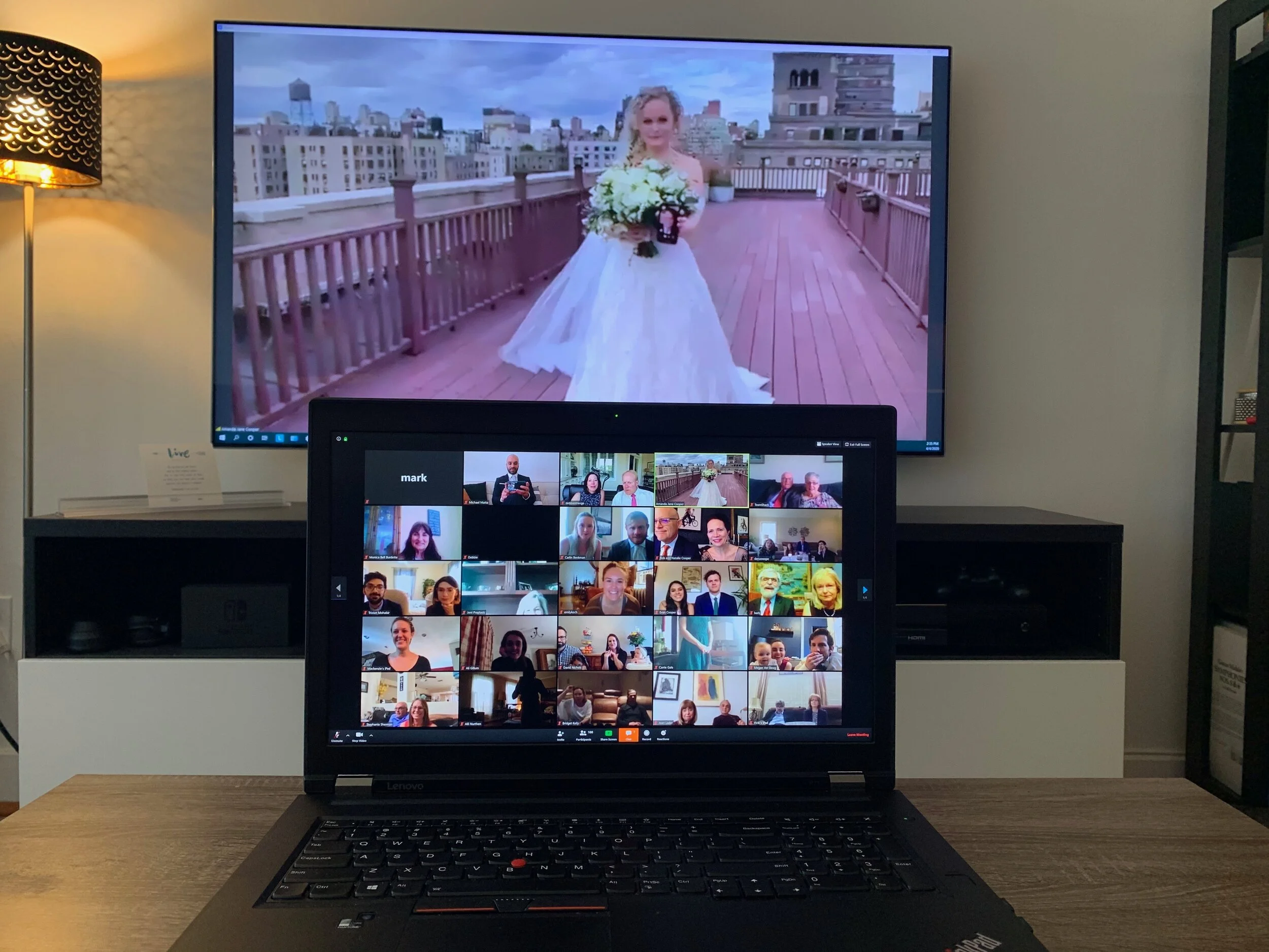 We are EXTRA grateful for her vision in this especially because, as we all know, our world came to an unprecedented halt due to COVID-19. By mid-March, we knew we had to change course. As we mourned the loss of the day we’d been dreaming of for months, Alice helped us reorient and come up with a new and beautiful plan to be wed on April 4th, 2020 via Zoom with our pastor and guests, on the rooftop of what would become our first apartment together in NYC. She worked creatively and tirelessly with our photographer ALN Images to capture glorious shots through the other side of the Zoom screen. We are grateful for this idea of hers', as we now have priceless memories of our unconventional day! During the ceremony, Alice was guiding our only ‘guests’: two neighbors, who happen to be a bridesmaid and groomsman, texting them to correct camera angles and to fluff the train of my gown, so that we would feel taken care of and so that the guests would enjoy the most beautiful nuptials possible. There is no barrier or problem that Alice cannot troubleshoot. From 3,000 miles away, she also coordinated a day-of timeline for us, which was key in getting us to the proverbial altar. Even though she couldn’t be there in person, her guiding hand of expertise was there to move the day along. She checked in with me via FaceTime as I was getting ready, just like she lovingly would if she were in person.